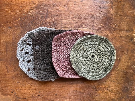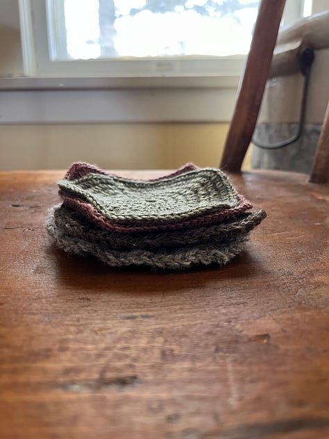 We’ve arrived at the second quarterly A Thin Space Handmade Item Raffle. Four times a year, I raffle off a handmade-by-me item to one of my paid subscribers. This time, I’m giving away these beautiful crocheted coasters. I wrote more about my coaster-making habit here: