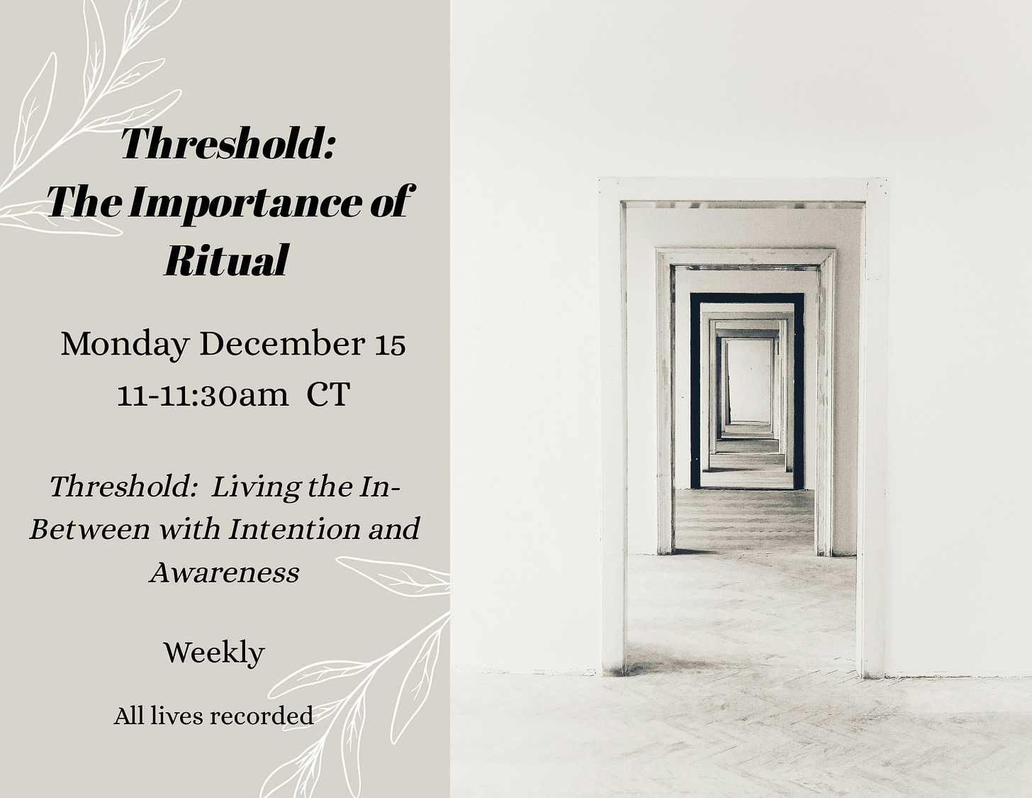 Julia Rymut and I will be discussing all things ritual on our live podcast coming up on Monday. This episode is the third in our series on Inhabiting and Creating Sacred Spaces. You can find the other two, “Being with the Natural World” and “Creating Sacred Spaces” on this page. And here’s a little more about the upcoming episode:
