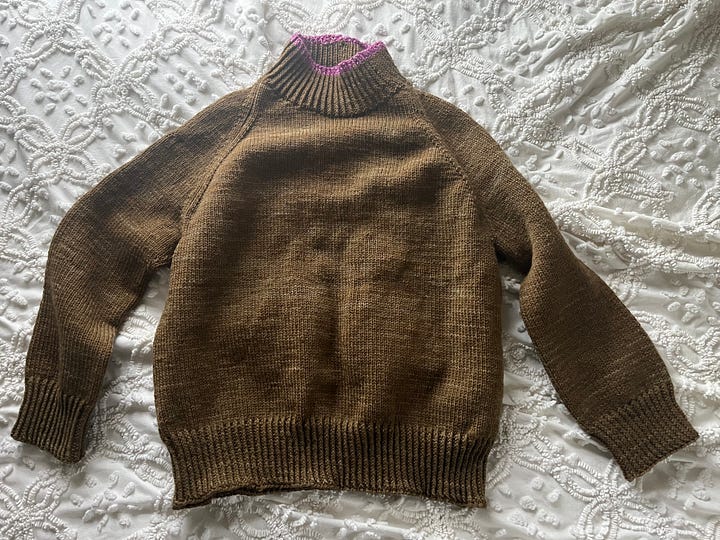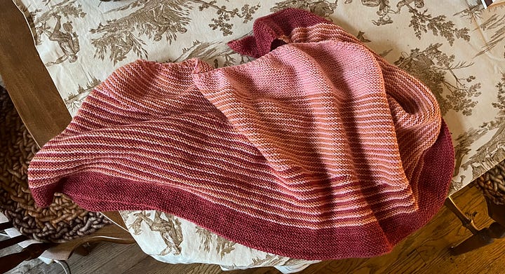 Nothing is happening in the garden, but everything is happening on the needles, or rather off them, because I have finished two projects in the last week, a shawl that I’ve had going for at least a year and the sweater you’ve witnessed the progress on here. Now, what do I knit next?